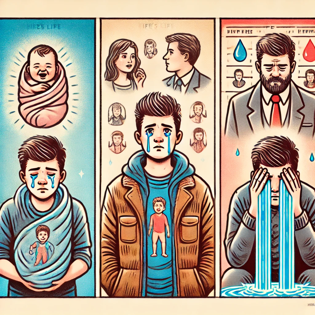 남자는 인생에서 세 번의 중요한 눈물을 흘리게 되며, 이 눈물들은 단순히 감정의 표현을 넘어서 각 시점에서 중요한 인생의 의미를 내포하고 있습니다. 첫 번째 눈물은 생명의 시작을 알리고, 두 번째 눈물은 청소년기의 감정적 성장과 변화, 세 번째 눈물은 성인이 된 후 직면하는 인생의 위기와 그 극복을 상징합니다. 이 세 번의 눈물은 남자가 감정적으로 성숙해가는 중요한 단계를 나타내며, 동시에 각 단계에서 자신을 돌아보고 성장하는 기회를 제공합니다.
